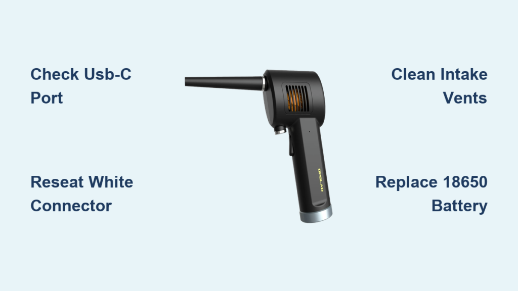 Your Opolar air duster suddenly quit during a critical cleaning session. The LED stays dark when you press the power