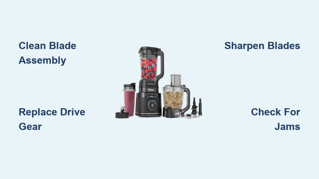 Your Ninja blender powers on with its signature roar, but the blades stay frozen while your kale and frozen berries