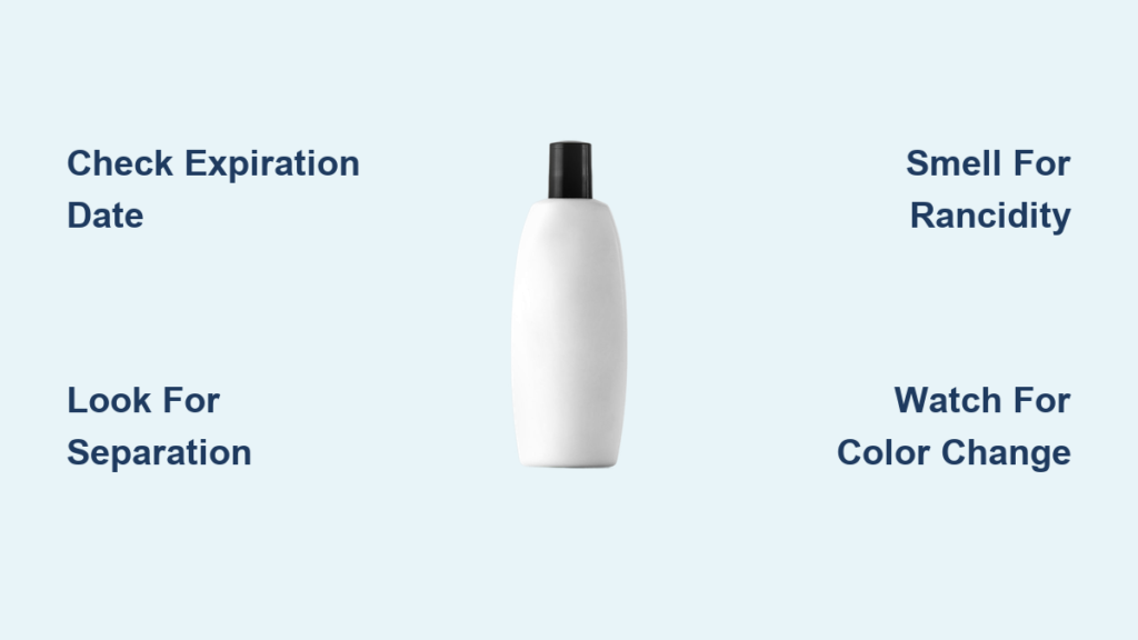 - Visual separation that won’t remix – Swirl the bottle vigorously. If oil pools persist or the liquid appears cloudy or lumpy, emulsifiers have failed. Do not use.