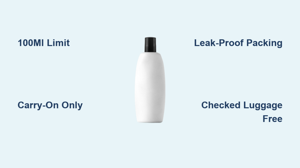 You’re standing at the airport security checkpoint, heart pounding as you realize your favorite full-size shampoo bottle is still in your carry-on. That sinking feeling—watching TSA agents confiscate your toiletries—is all too familiar for travelers who don’t know the exact size limits. The critical truth? Your shampoo bottle’s physical capacity determines its flight eligibility, not how much liquid remains inside. A nearly empty 12-ounce bottle gets tossed just as fast as a full one. This guide cuts through the confusion with precise, actionable rules for both carry-on and checked luggage. You’ll discover why a 100ml container is your carry-on maximum, how to pack full-size bottles safely in checked bags, and the leak-proofing tricks that save your clothes from shampoo disasters. Let’s get your toiletries through security without a single ounce left behind.
