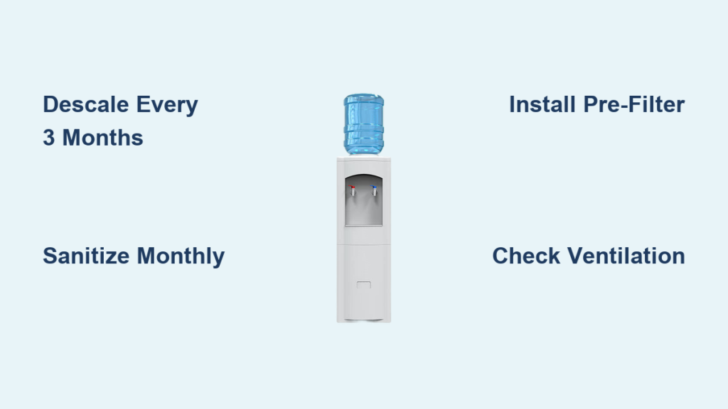 A single glass of hard water leaves behind invisible minerals that bake onto hot surfaces. After 6 months, that coating thickens into rock-like scale. In areas with >120 ppm hardness, coolers fail 3× faster. You’ll see white crust around the hot tap spout—that’s your warning sign. Don’t wait for lukewarm water; descale quarterly if you have hard water.