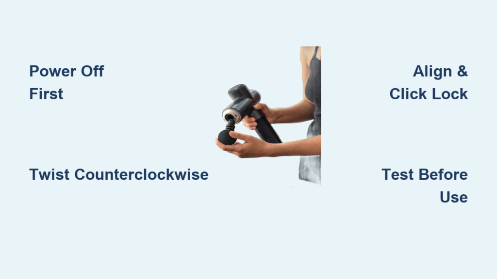Your massage gun head suddenly wobbles during a deep tissue session, or you need to switch from a bullet tip for trigger points to a flat head for your quads. Knowing how to change a massage gun head correctly takes 30 seconds and prevents costly damage—but forcing it can strip connectors or strain the motor. Most users don’t realize improper attachment is the #1 cause of premature motor failure in percussive therapy devices. This guide reveals the exact twist-and-lock technique manufacturers don’t emphasize, plus critical safety checks you’ll only find here. By the end, you’ll swap heads confidently for any muscle group while extending your device’s lifespan.