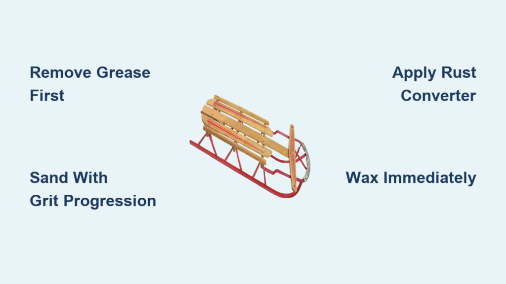 That first snowfall calls for sledding, but nothing kills the fun faster than rusty sled runners grinding to a halt. When oxidation takes hold, your once-smooth glide turns into a sluggish crawl that damages snow surfaces and frustrates riders. Rusty sled runners compromise safety by creating uneven traction and hidden weak spots. The good news? You can revive them to like-new condition with basic tools and this proven method. In just 90 minutes, you’ll transform pitted metal into a friction-free surface that slices through snow. This guide delivers the exact process I’ve used for over a decade to keep vintage sleds racing down hills.