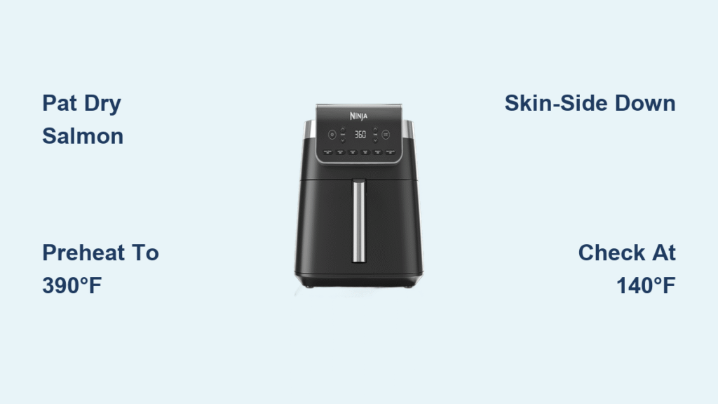Skip the preheating debate—your Ninja needs this non-negotiable step for consistent results. Set it to 390°F for 3-4 minutes while prepping salmon. This blast of heat creates instant sear contact, mimicking a hot skillet. Line the basket with perforated parchment paper (never solid—it blocks airflow!) to prevent sticking without sacrificing crispness. Grab paper towels for the critical drying step and a meat thermometer—guessing doneness ruins more salmon than bad seasoning.