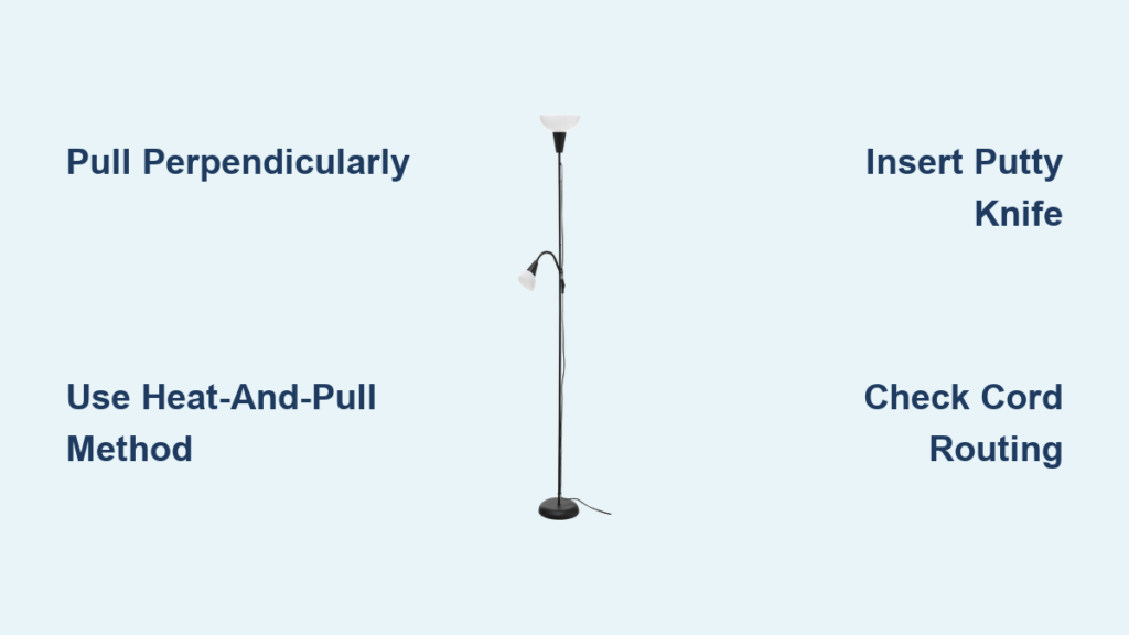 If the base won’t detach, invert the lamp and place the base on a folded towel. Stand on the base (shoes off) while pulling the tube upward—your body weight provides controlled force. Never use lubricants—they attract dust that gums up reassembly. For stripped screws, place a rubber band between the hex key and screw head for extra grip before turning.