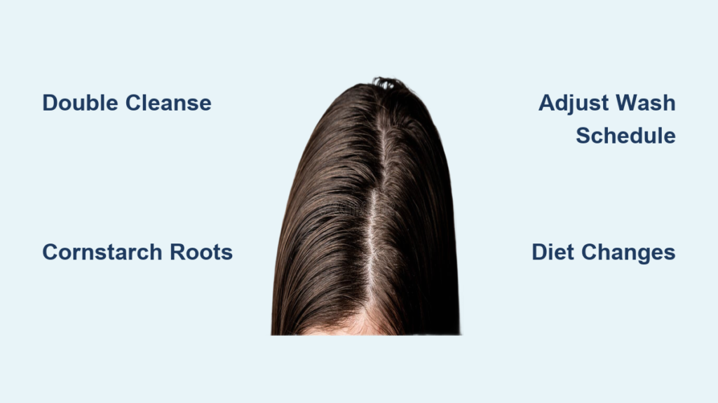 Track your progress: Most see reduced greasiness by Day 5. Continue the double-cleanse technique 2x/week, use natural absorbents sparingly, and maintain dietary changes. Within 30 days, your scalp will produce less oil naturally, giving you consistently fresh hair. Remember—consistency beats perfection. Skip one step? Resume immediately. Your hair’s health depends on daily habits, not quick fixes.