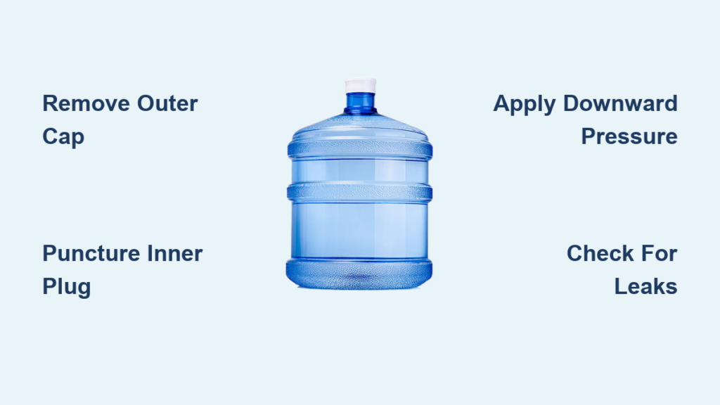 Remove the large outer cap first, then pull the plastic tab or tear the foil safety seal beneath it. Crucially, do not remove the inner plastic plug inside the spout—that stays in place until installation punctures it. Wipe the rim with a clean, dry cloth to remove any dust particles that could compromise the seal. Inspect the jug for cracks, especially near the neck, as even hairline fractures will cause leaks when you install water cooler jug. For top-loading coolers, consider the plastic wrap method at this stage to prevent spills during inversion.