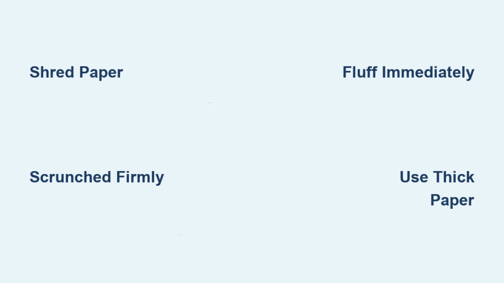 This is where most DIYers fail—simply shredding paper isn’t enough. Immediately after shredding, gather small handfuls (about 1/4 cup) of shreds and follow this exact technique: