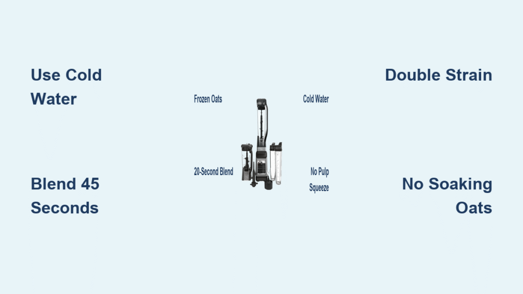Cold water is your anti-sliminess secret weapon. Fill a pitcher with water + 3 ice cubes straight from the fridge. Warm water triggers oat starches to swell, creating glue-like texture within 20 seconds of blending. Never use room-temperature water—even in winter. Pro move: Chill your Ninja pitcher 10 minutes pre-blend for temperature stability during processing.