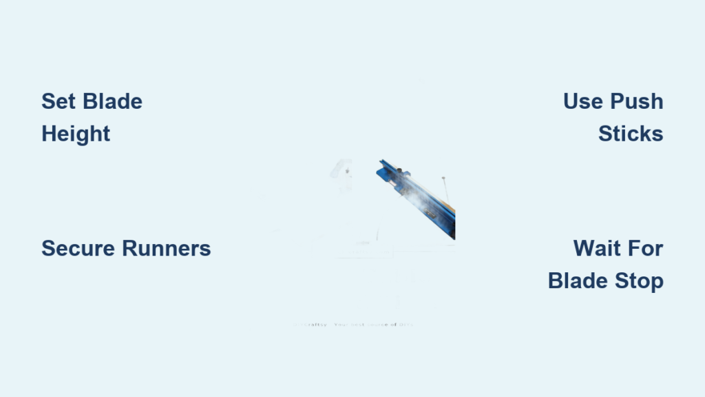 Set your blade height to exactly 1/4 inch above your workpiece thickness plus the sled base. A blade protruding too high creates dangerous exposed teeth, while one too low causes burning and binding. Crucially, reinstall your riving knife or attach a shop-made transparent blade guard to the sled’s front fence. Never operate without overhead protection—the sled removes your saw’s standard guard, leaving the blade fully exposed during forward travel. If your sled lacks a guard, stop immediately and fabricate one from polycarbonate; this single step prevents 90% of sled-related injuries.