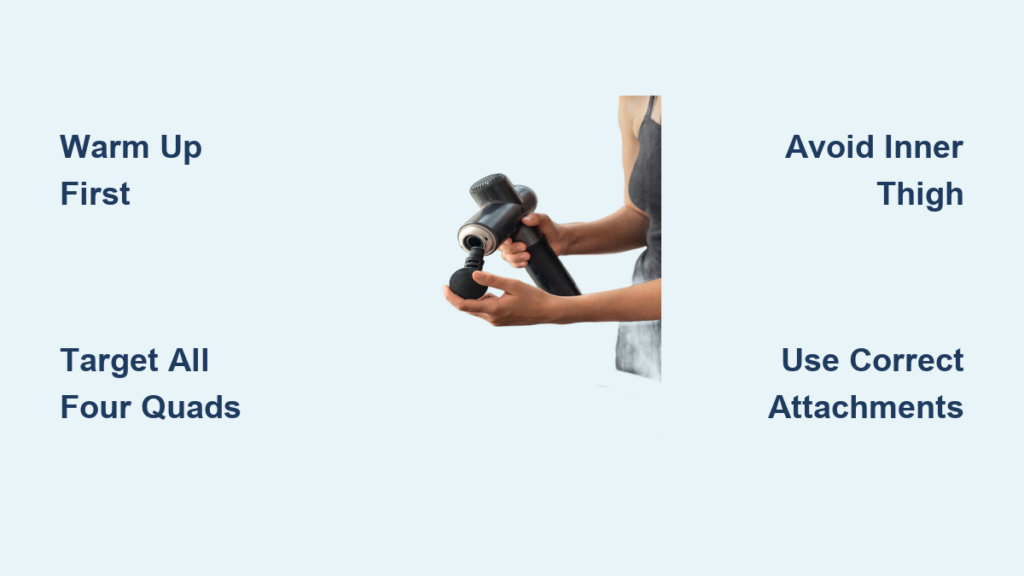 Forget generic advice that ignores your quad anatomy. The rectus femoris, vastus lateralis, vastus medialis, and vastus intermedius each demand unique targeting. Done right, using a massage gun on quads slashes DOMS by up to 50% and boosts flexibility within days. Get this wrong, and you’ll aggravate IT band issues or bruise delicate tissue. Let’s fix that now.