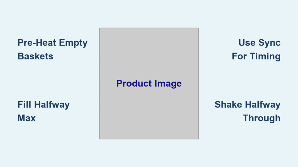 Never fill baskets beyond the halfway mark—this simple rule prevents the soggy-bottomed, burnt-top disaster plaguing new users. For small items like French fries or broccoli florets, fill only to the halfway line. Larger items like chicken breasts require a single layer with at least 1 inch of space between pieces. Overfilling blocks the 360° air circulation that creates even cooking.