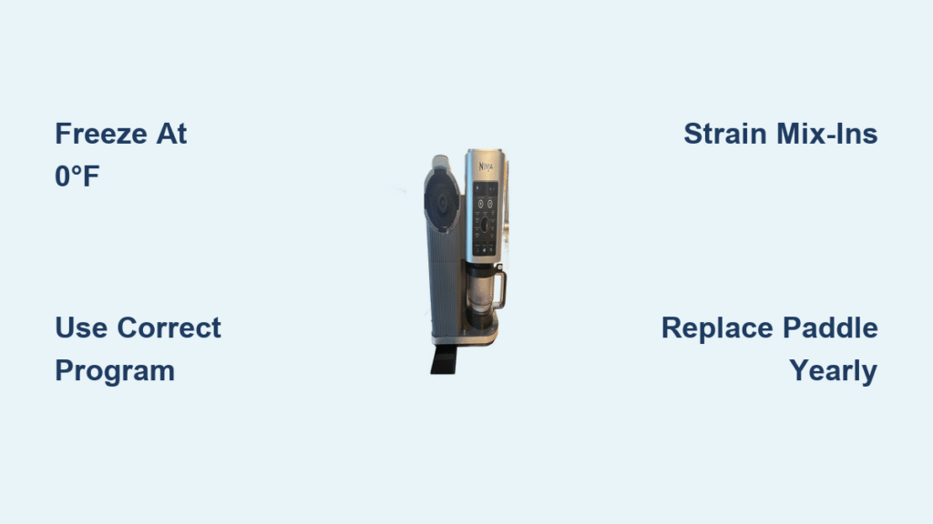 Instant fix: Let base temper at room temperature for exactly 8 minutes. Set a timer—9 minutes causes melting, 7 minutes remains too hard. If recurring, replace the paddle (Ninja part #CP-001).