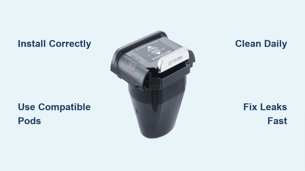 Place a paper towel under the adapter area while brewing to pinpoint leaks. If dampness appears behind the adapter, it’s not fully seated—reinstall with firm downward pressure. If leaks pool under the machine, the pod’s foil top was punctured during insertion. Always drop pods straight down; tilting tears foil. For persistent leaks, apply food-grade silicone grease to the adapter’s sealing ring quarterly—it maintains elasticity in dry climates.