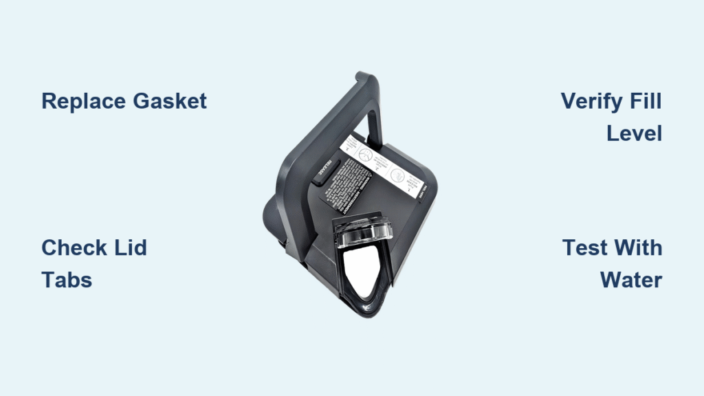 Step 2: Hand-tighten your blade assembly, then invert the container over the sink. Water dripping from the bottom confirms gasket failure requiring immediate replacement.