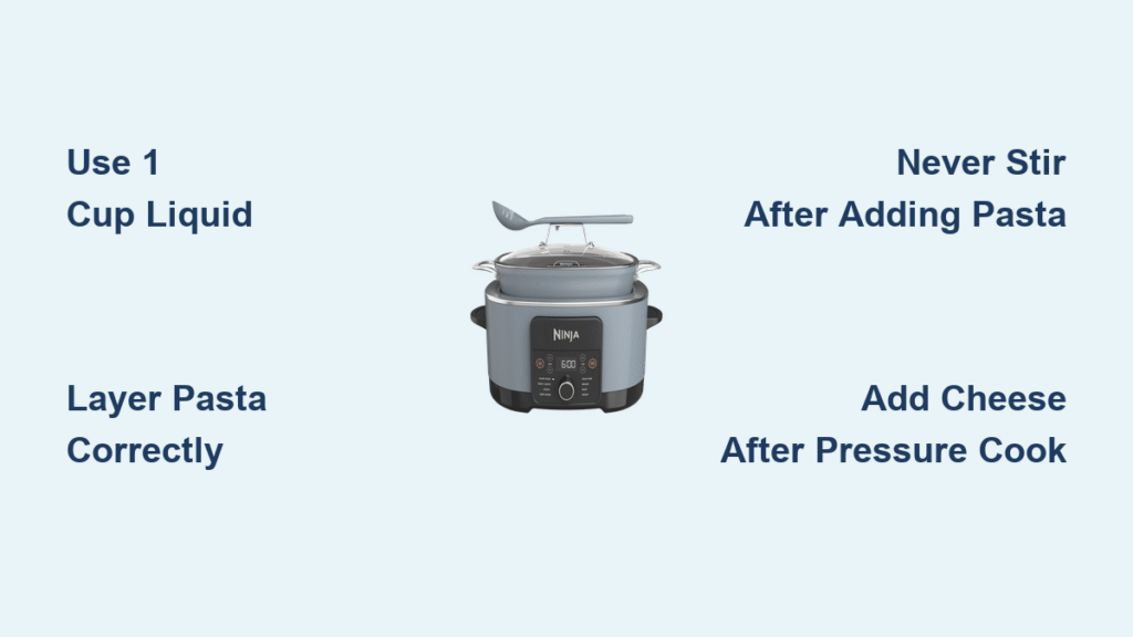 Layer thin liquids first, followed by proteins and seasonings. Never stir after adding pasta—this prevents sticking and ensures even cooking. The Foodi’s pressure environment naturally circulates liquid around the pasta without manual intervention.