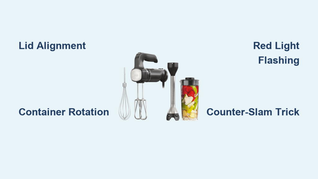 Your Ninja’s safety system requires millimeter-perfect lid positioning. The spout must sit exactly opposite the container handle, with the handle pressed down until it clicks through the lid’s cutout. Any deviation prevents startup.