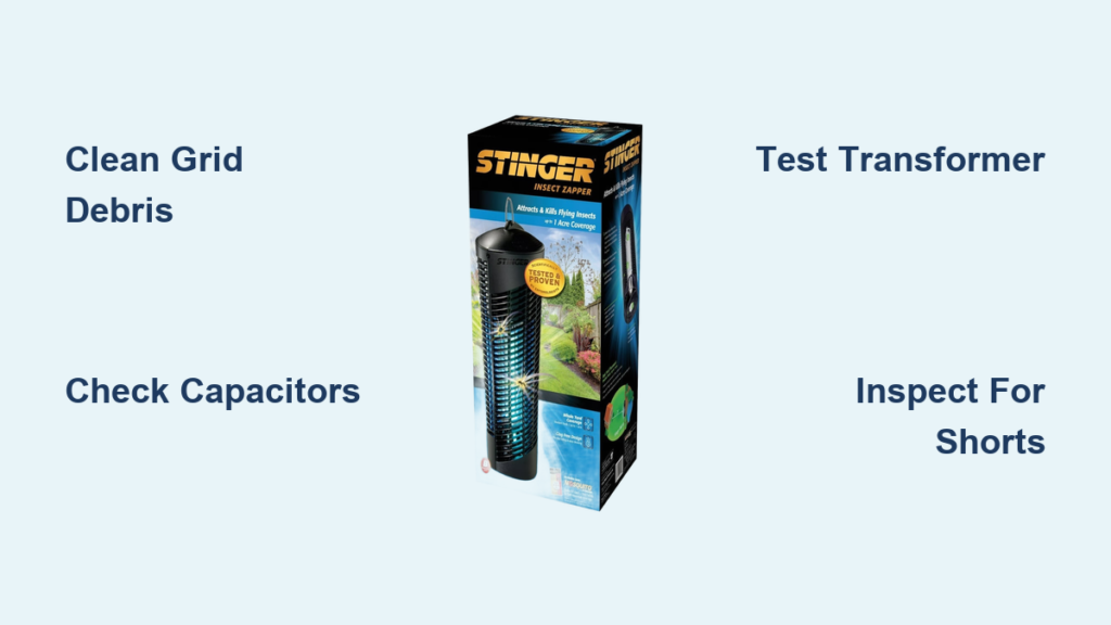 Your Stinger bug zapper’s UV light glows steadily, attracting mosquitoes and flies to your patio—but the satisfying zap is completely silent. This frustrating scenario—where the stinger bug zapper light not working symptom is actually misleading since the light is functioning—points directly to a high-voltage circuit failure. When your bug zapper illuminates but won’t electrocute insects, the problem lives in the 3,000-4,500 volt grid system, not the UV light circuit. This guide delivers precise, actionable fixes for this specific failure mode, helping you restore your zapper’s pest-killing power in under 30 minutes. You’ll learn to safely diagnose capacitor failures, grid shorts, and transformer issues using basic tools—no electrical expertise required.