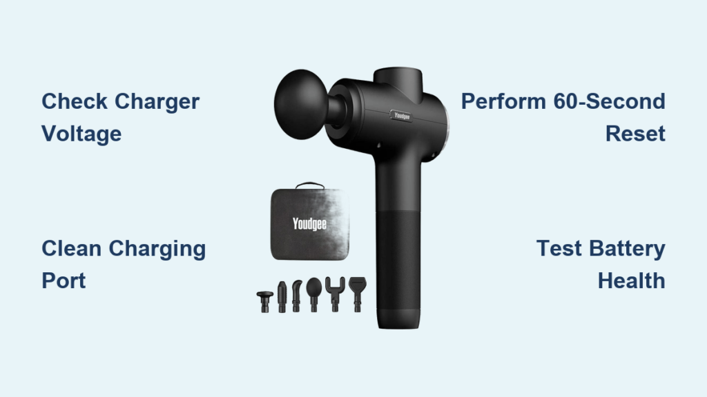 Your Youdgee massage gun has become a critical part of your recovery routine, but now it sits lifeless when you need it most—the charging indicator won’t light up, and the device remains completely dead. When your massage gun won’t charge, it transforms from a recovery essential into an expensive paperweight. This guide cuts through the frustration with specific, actionable steps to diagnose and fix your non-charging Youdgee massage gun, whether the problem is a simple cable issue or a more complex internal failure.